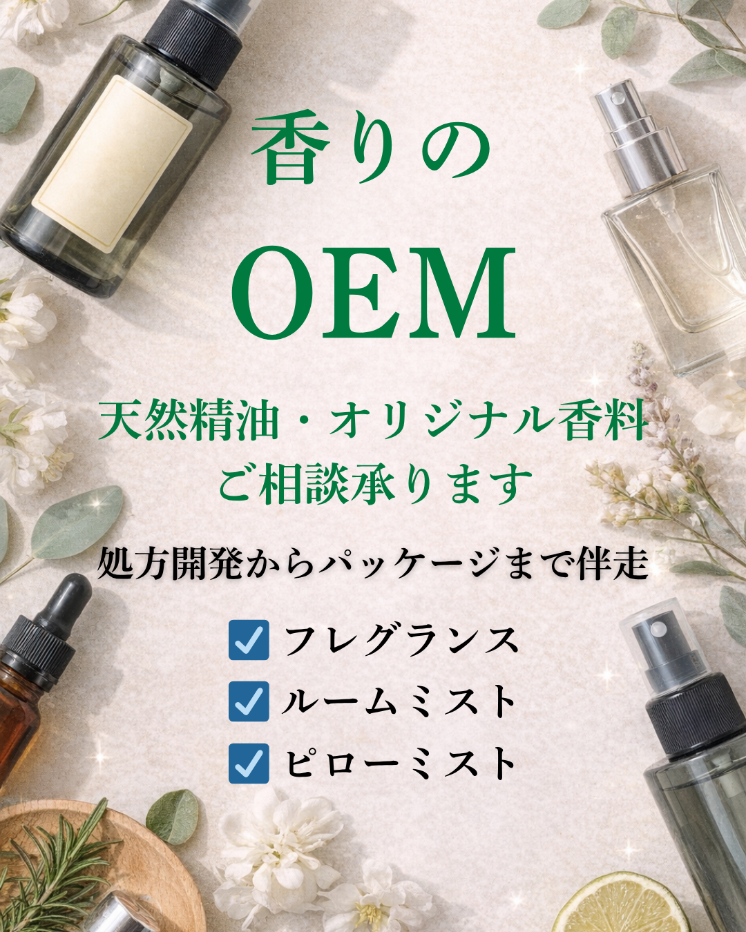 使う方の笑顔を原点に、ODM&OEMや業務用化粧品、自社ブランド開発まで幅広く対応。積み重ねた経験と実績で、想いをかたちにします。