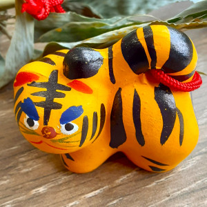 笹には、お守りとともに 小さな「虎の置物」 が付けられています。